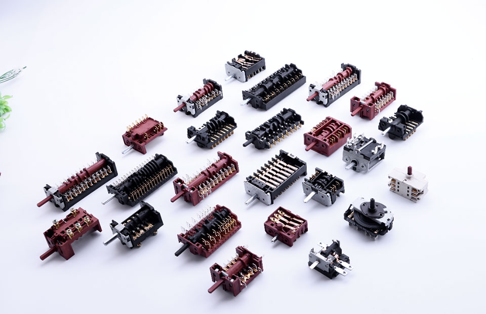 旋轉(zhuǎn)開關(guān)也叫檔位開關(guān)、選擇開關(guān)、轉(zhuǎn)換開關(guān),我司現(xiàn)已擁有30余款系列產(chǎn)品,300余種功能規(guī)格,產(chǎn)品廣泛應(yīng)用于電烤箱、電灶、發(fā)熱盤、烤箱灶具一體機(jī)、絞肉機(jī)、大功率工業(yè)暖風(fēng)機(jī)、空氣調(diào)節(jié)器、蓄電池充電器、燒水器、商業(yè)洗衣機(jī)、商業(yè)咖啡機(jī)等多種家用、商用及工業(yè)用電器上面。
